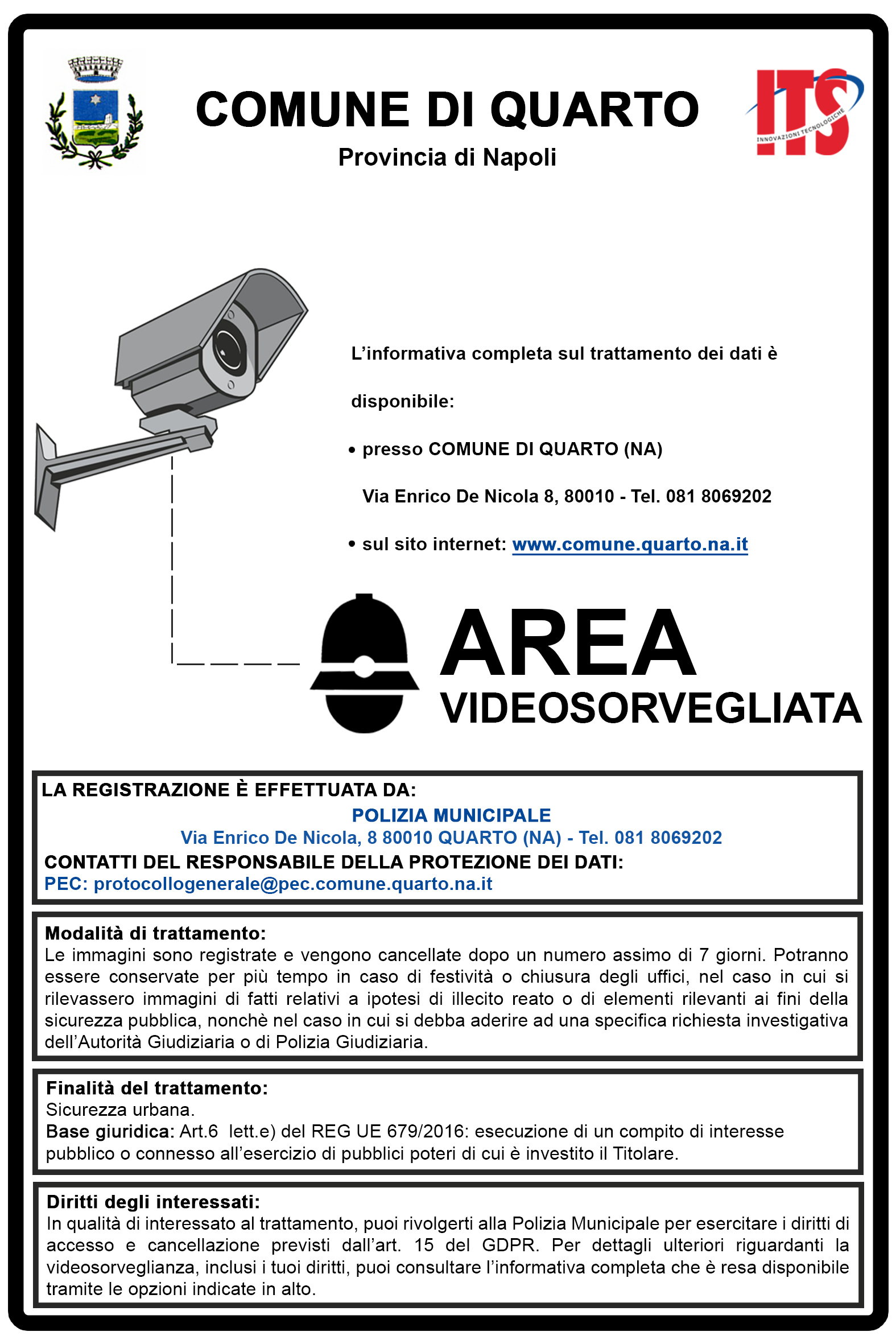 Il Titolare ha provveduto a designare per iscritto il Responsabile del trattamento dei dati di Videosorveglianza nella figura del comandante della Polizia Municipale, il quale può essere contattato tramite posta elettronica all’indirizzo e-mail: poliziamunicipale@comune.quarto.na.it