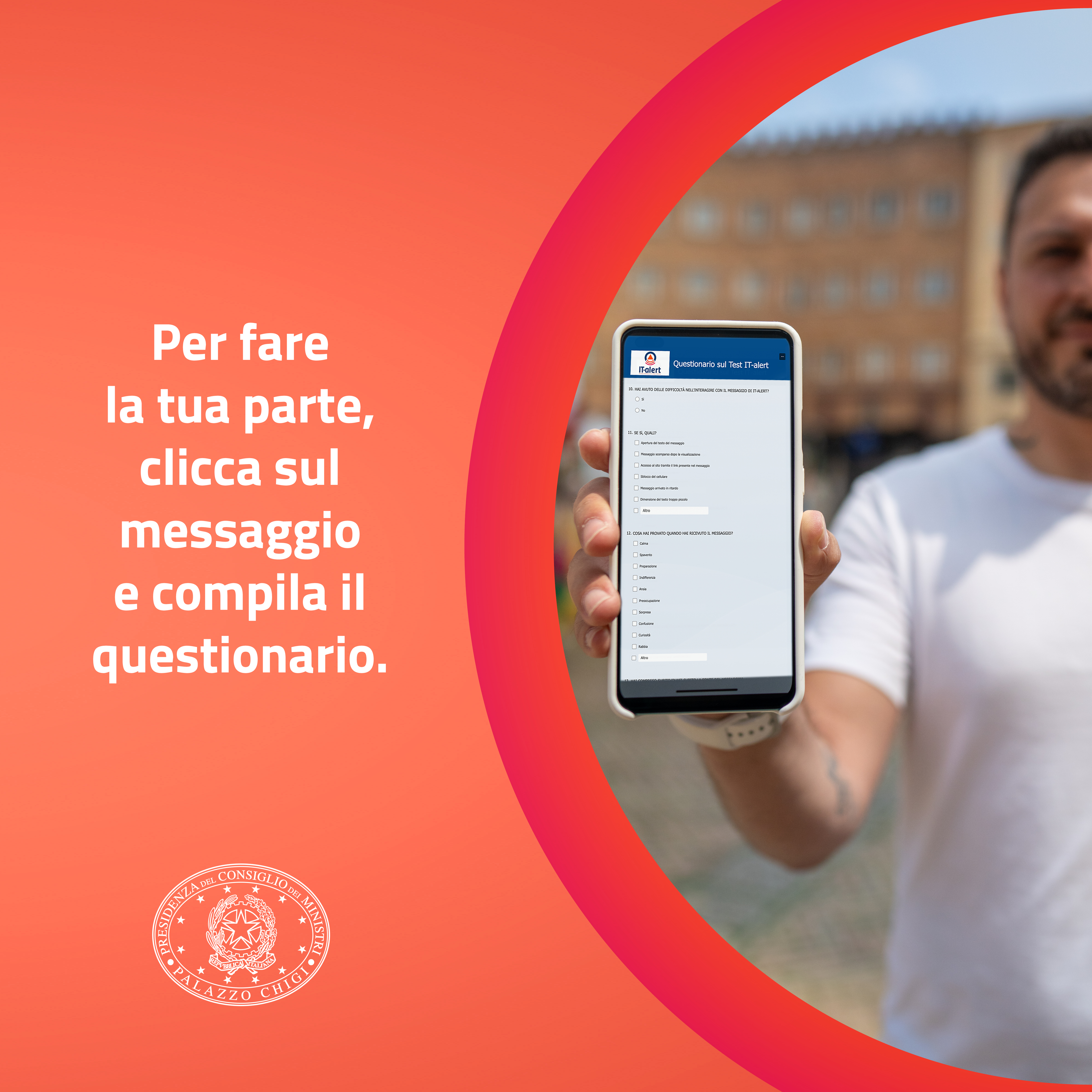 Il messaggio è solo un test. I cittadini dovranno esclusivamente prendere visione del messaggio e compilare un questionario che sarà in forma assolutamente anonima.