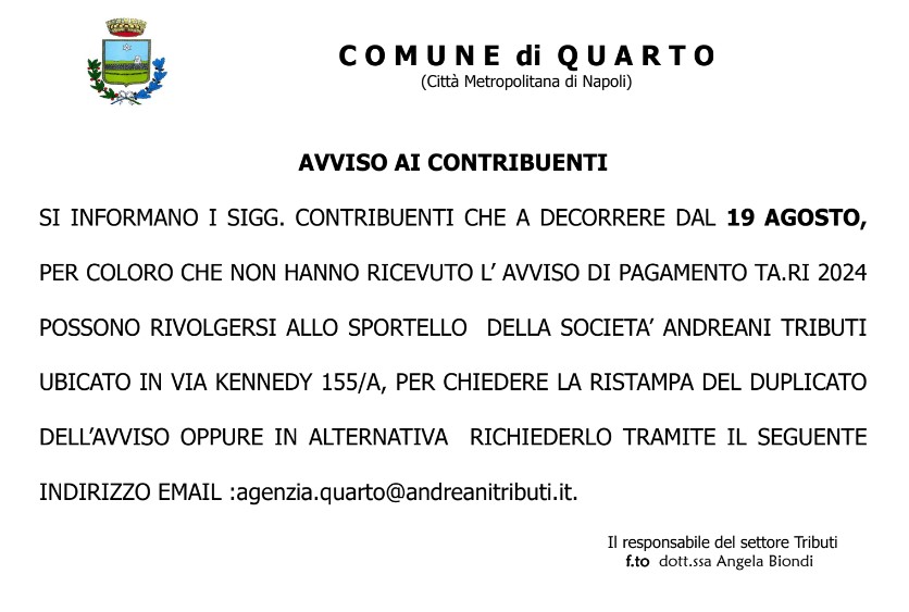 Avviso TA.RI: modalità richiesta duplicato avviso di pagamento