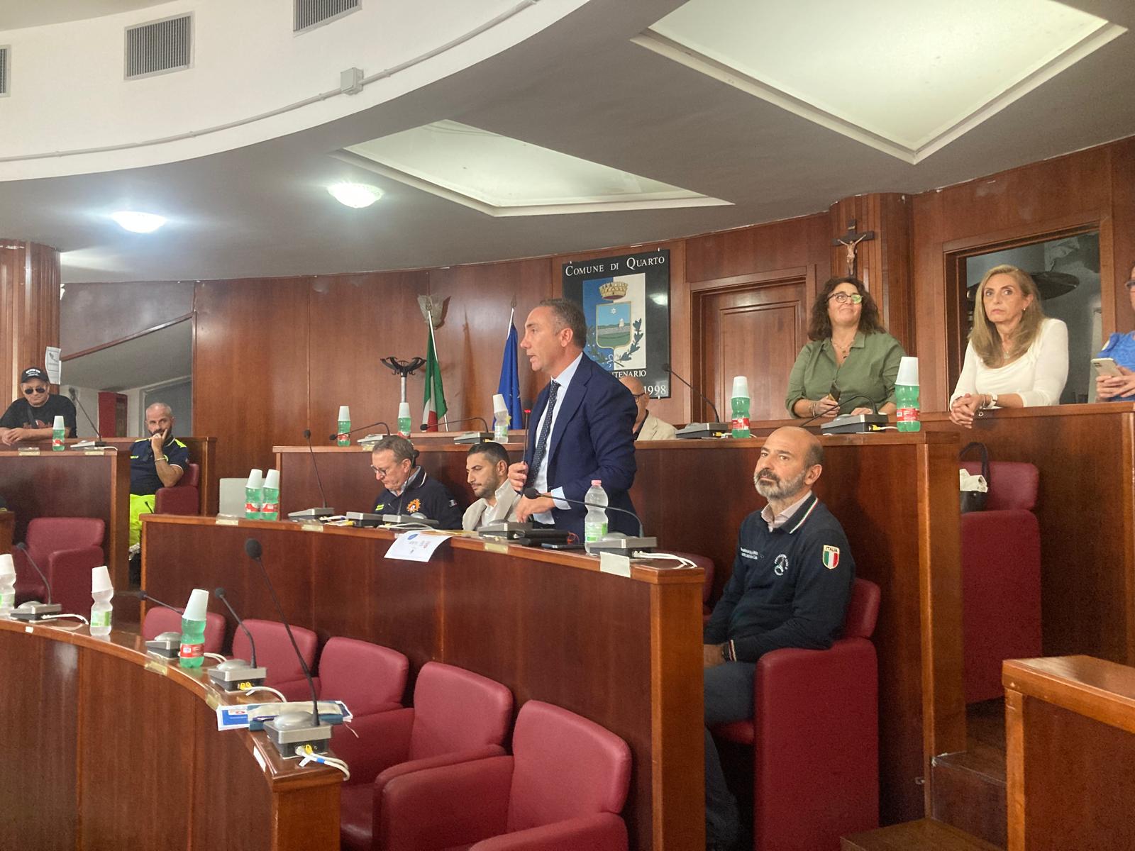 Dichiarazione del Sindaco Antonio Sabino: «Ringrazio il capo del dipartimento nazionale della Protezione civile, Fabio Ciciliano, i rappresentanti del dipartimento nazionale con la presenza a Quarto del Direttore operativo del coordinamento emergenze del dipartimento nazionale Luigi D'Angelo e il dirigente della Protezione civile regionale, Italo Giulivo, che ha voluto organizzare e essere presente insieme a noi al momento di confronto pubblico con la cittadinanza per discutere insieme di prevenzione del rischio sismico e vulcanico, a pochi giorni dalla settimana dell'esercitazione EXEFlegrei 2024 che coinvolgerà anche il nostro Comune - dice il sindaco Antonio Sabino, che ha partecipato all'incontro pubblico con la cittadinanza che si è tenuto in Aula consiliare - Ringrazio anche i tantissimi cittadini presenti, gli assessori e i consiglieri comunali guidati dal presidente del Consiglio comunale. Siamo da sempre molto attenti ai temi della prevenzione di protezione civile. Siamo in un territorio fragile anche da un punto di vista geologico e il prossimo 30 settembre approveremo in via definitiva in Consiglio comunale il nuovo Piano di Protezione civile comunale. Un piano aggiornato, pubblicato anche sul nostro sito web istituzionale e al quale si è arrivati dopo uno studio e un confronto durato molti mesi, al fine di recepire anche le indicazioni provenienti dai cittadini e dal territorio. Per la settimana dell'esercitazione EXEFlegrei 2024, poi, inaugureremo la nuova e più funzionale sede del Centro Operativo Comunale di Protezione civile, che abbiamo localizzato in un ex alloggio sgomberato della scuola «Piero Gobetti»: una sede anche dall'alto valore simbolico, in quanto bene pubblico che ritorna alla città dopo lo sgombero. Sarà una sede attrezzata per le videconferenze con la Sala Situazione Italia del dipartimento nazionale, con la protezione civile regionale e con la Prefettura-UTG di Napoli».