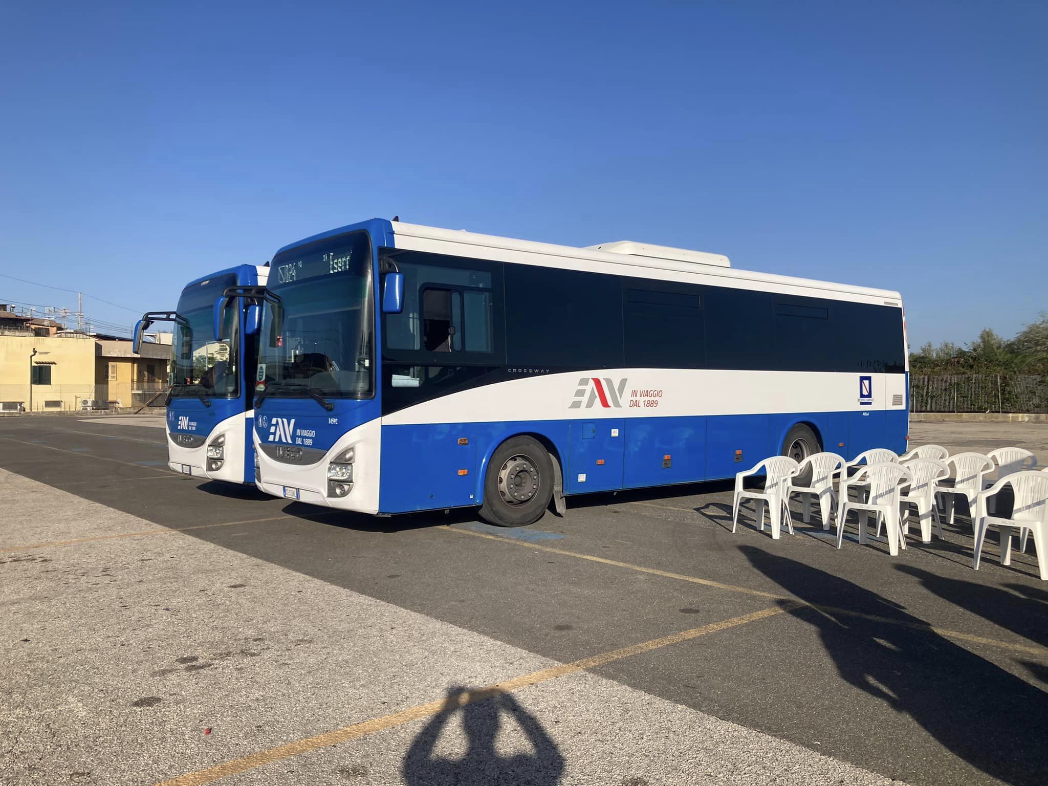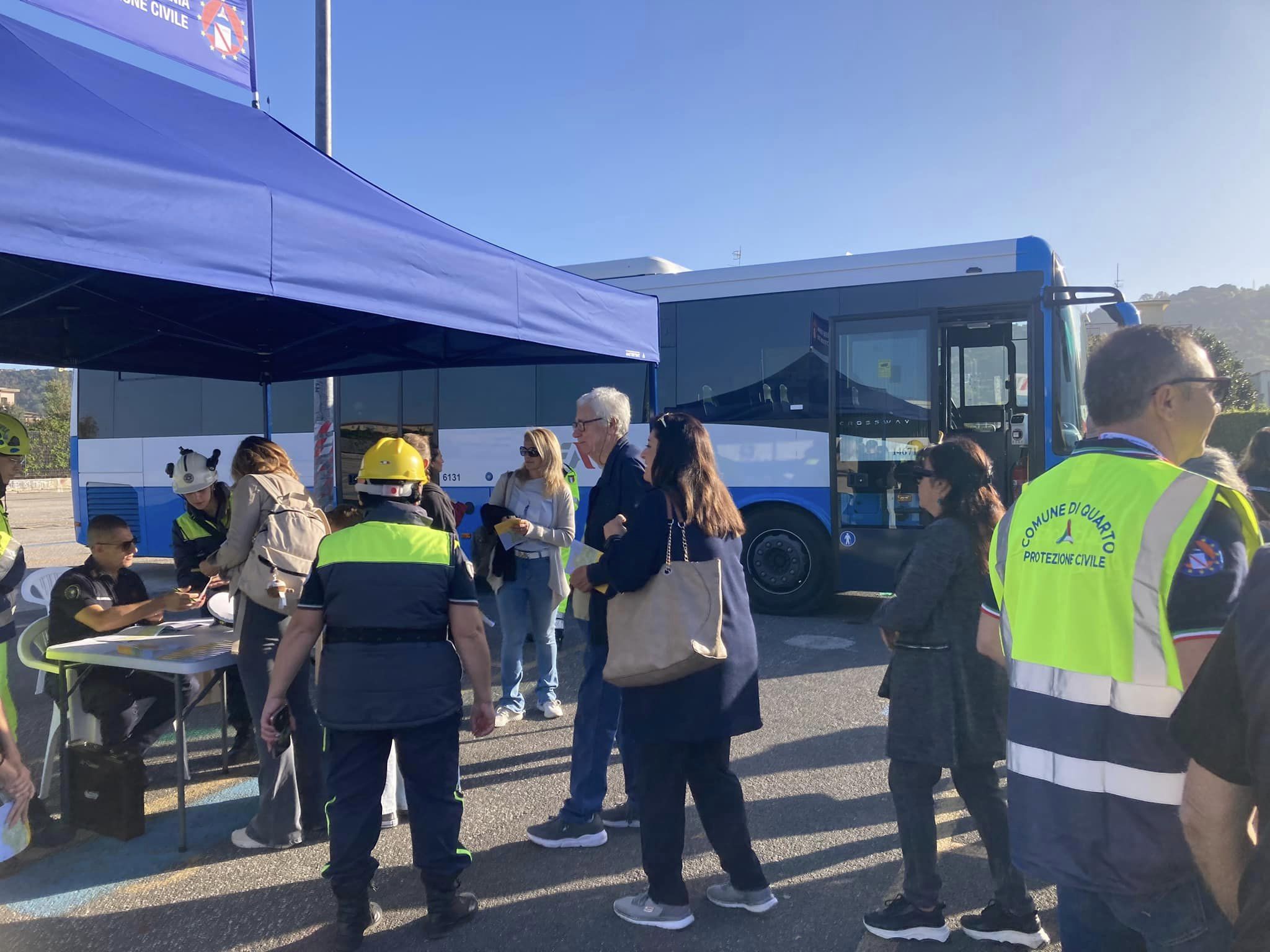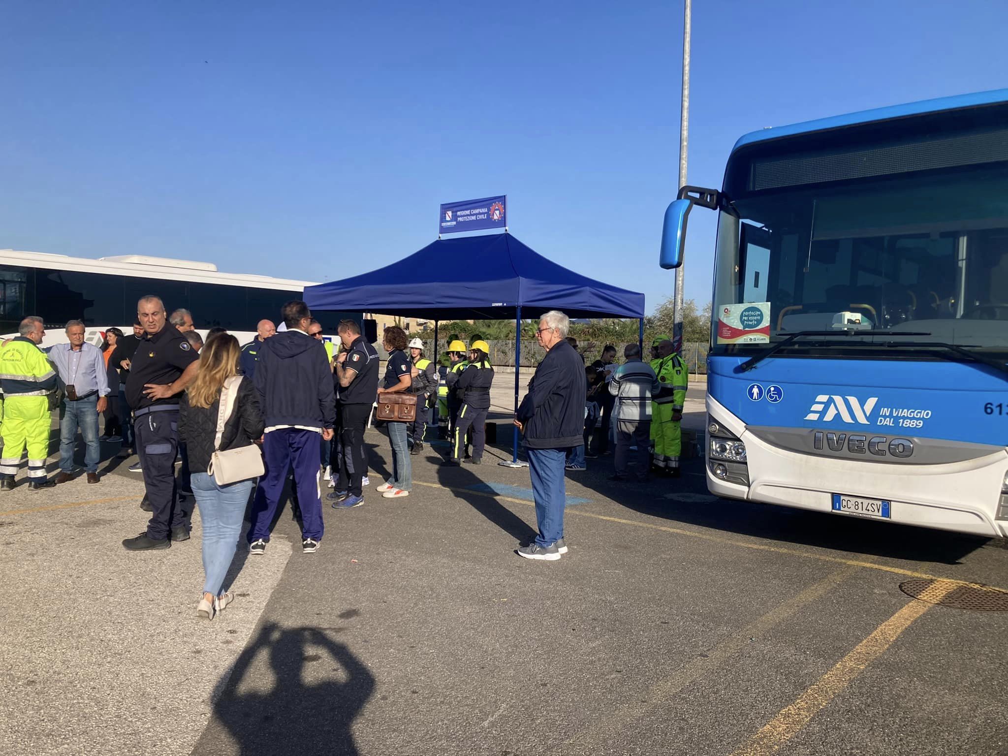 In fila i cittadini che hanno aderito all'esercitazione. In allontanamento assistito con i pullman regionali dell'Acamir verso l'area di incontro di Aversa Stazione Ferrovie dello Stato.