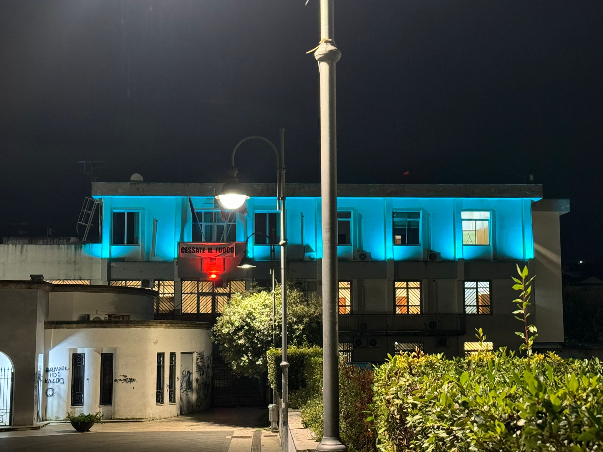 Per l'occasione, il Comune di Quarto illumina di blu la sede Municipale ritratta dal lato della sede consiliare di Piazzale Europa. [vedi foto]
