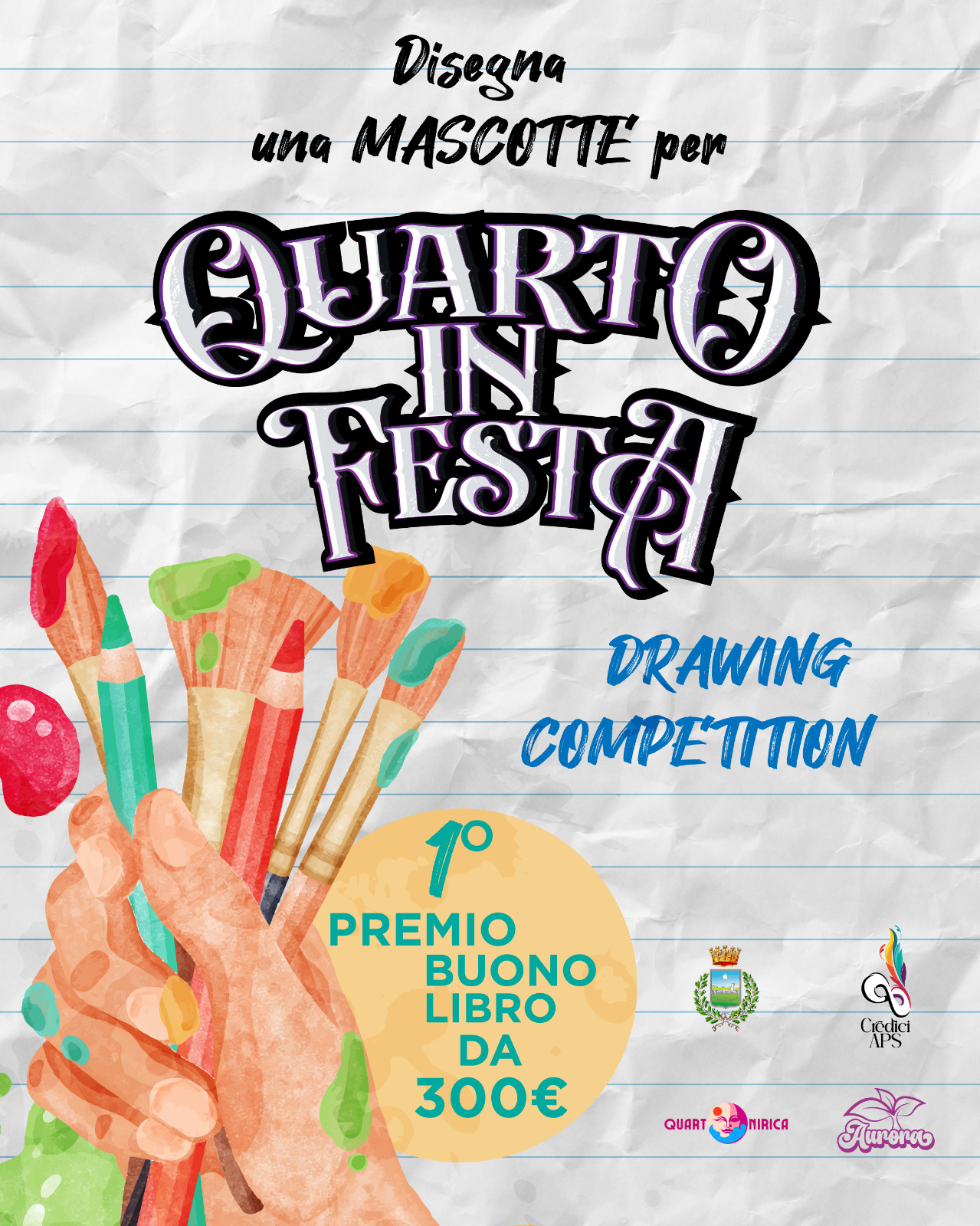 Il bando di concorso "Una mascotte per Quarto in festa", proposto dall'Associazione Credici insieme al Comune di Quarto, ha ad oggetto l'ideazione e il disegno, anche solo in bozza o sottoforma di sketch, di una mascotte per la prima edizione della manifestazione "Quarto in festa" 2025.