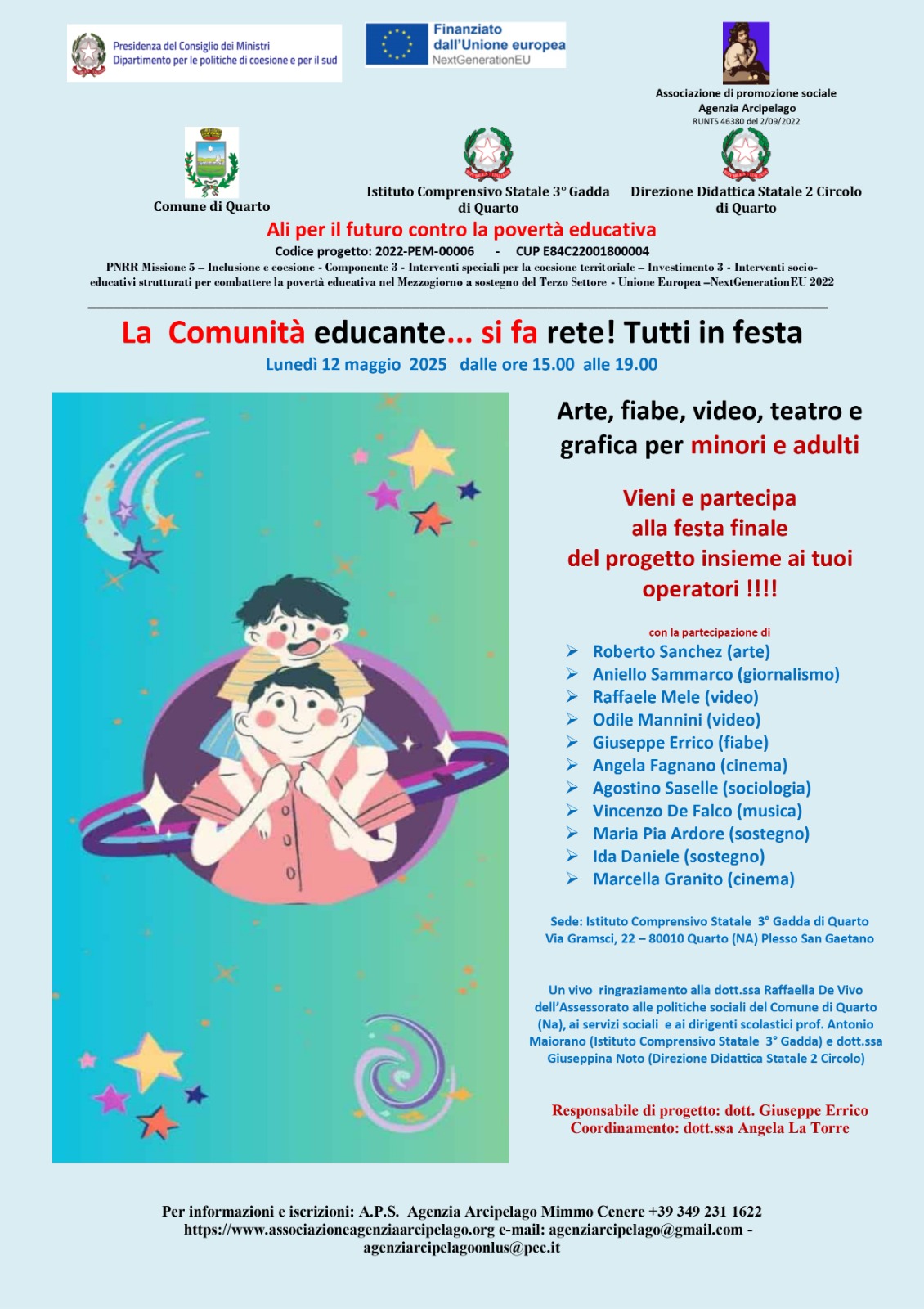 Non perdete la grande festa finale del progetto "Ali per il futuro contro la povertà educativa"! Un pomeriggio speciale per celebrare la "Comunità educante" che si fa rete!