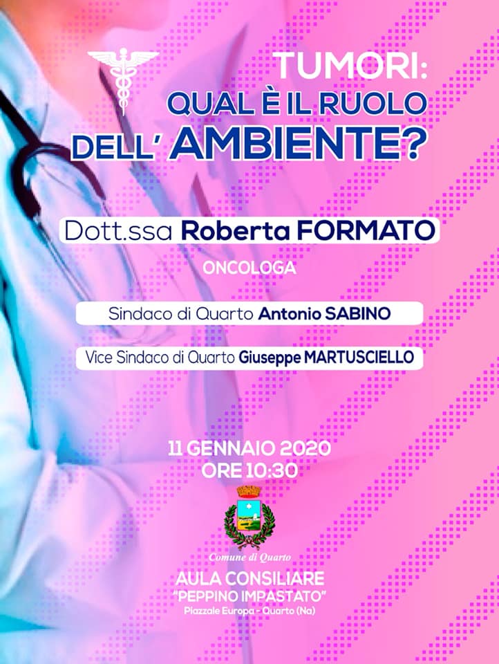 “Tumori: qual è il ruolo dell’ambiente?”, sabato 11 gennaio 2020, Aula consiliare “Peppino Impastato” di Quarto